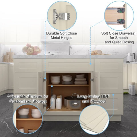 Our base cabinet has a large capacity cabinet space, equipped with 1 door and adjustable shelves