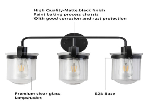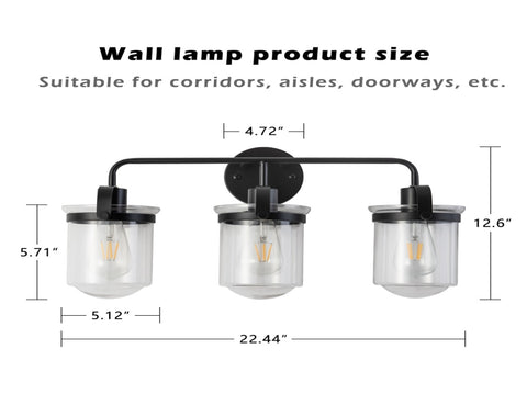 3-Light with Clear Glass Shade, Modern Sconce, Industrial Indoor Light Fixture for Bathroom Living T3177P283991