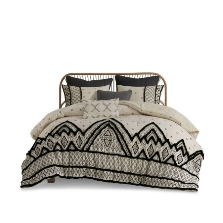 Create a modern-boho eclectic look in your bedroom with the INK+IVY Marta 3 Piece Cotton Comforter Set. The natural-hued cotton and flax linen comforter and shams features a black diamond print with black chenille textured trim that adds dimension and creates a globally inspired look. The cotton flax linen fabric creates a crisp, natural texture. Hidden bar tacking gives the comforter a clean, duvet-like finish. Machine washable for easy care, this cotton comforter set combines style and comfort to elevate your bedroom.