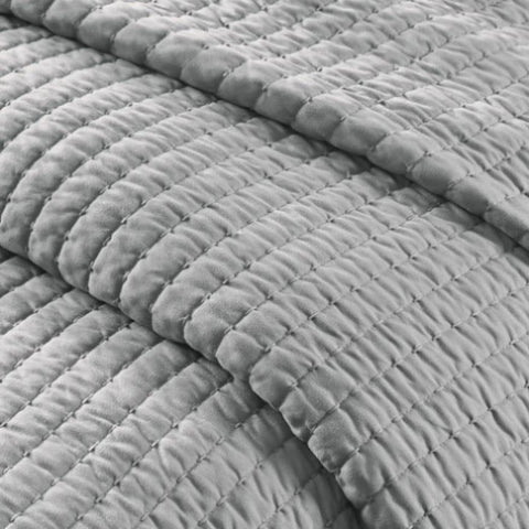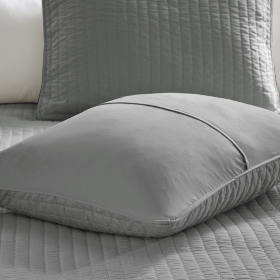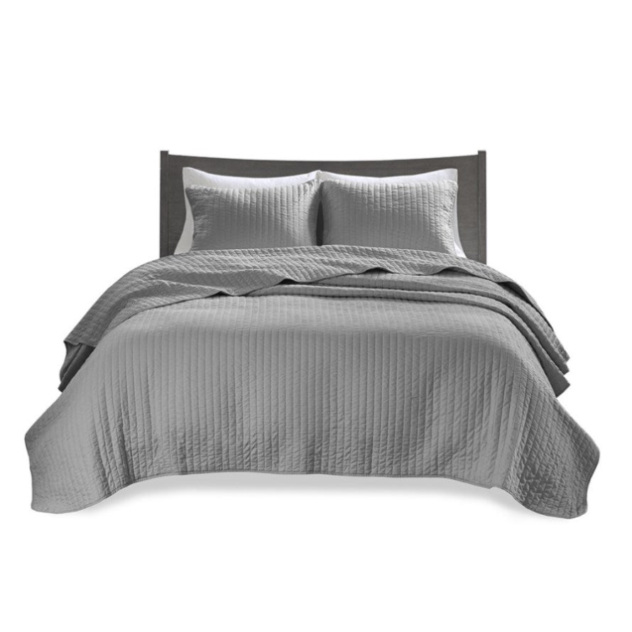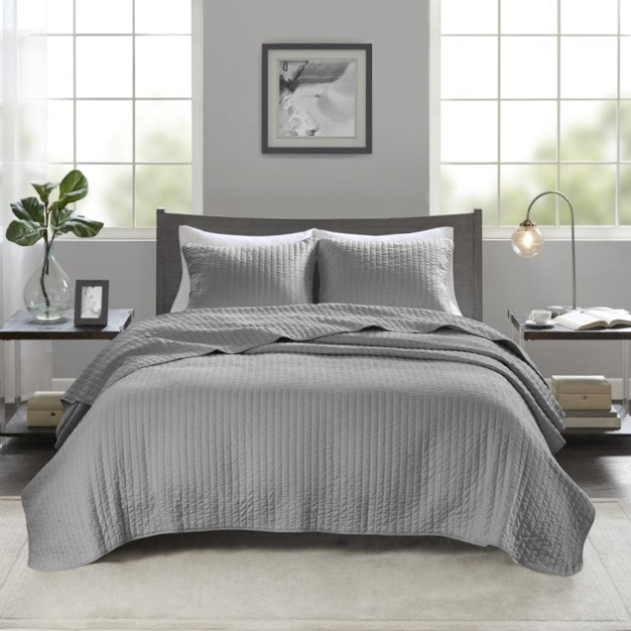 The Madison Park Keaton Reversible Quilt Set provides a simple and casual update to your bed. This solid grey reversible quilt features pick stitch channel quilting to keep the cotton-rich filling secure and create a cozy farmhouse look. Matching shams (1 in Twin/TwinXL) complement the quilt to complete the reversible bedding set. This quilt also has an antimicrobial treatment that provides built-in freshness protection, reducing the growth of odor causing bacteria to keep fabric lasting longer. Made from soft brushed microfiber, this reversible quilt set is perfect for summer or as an extra layer in cold weather.