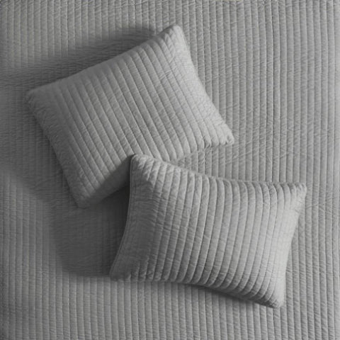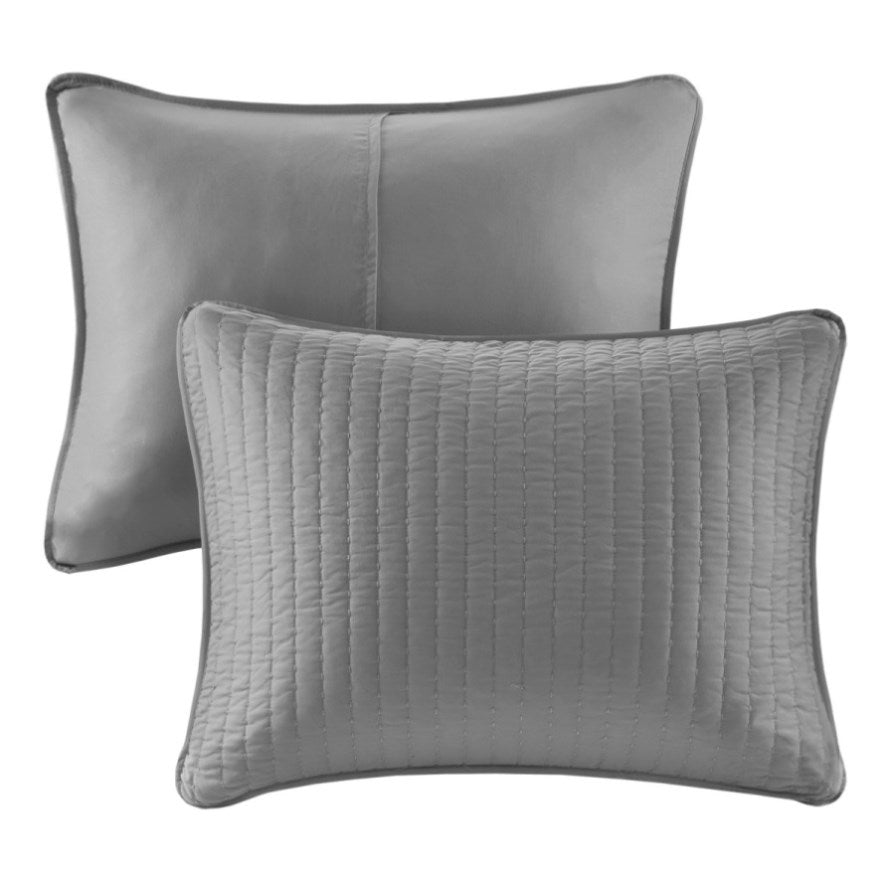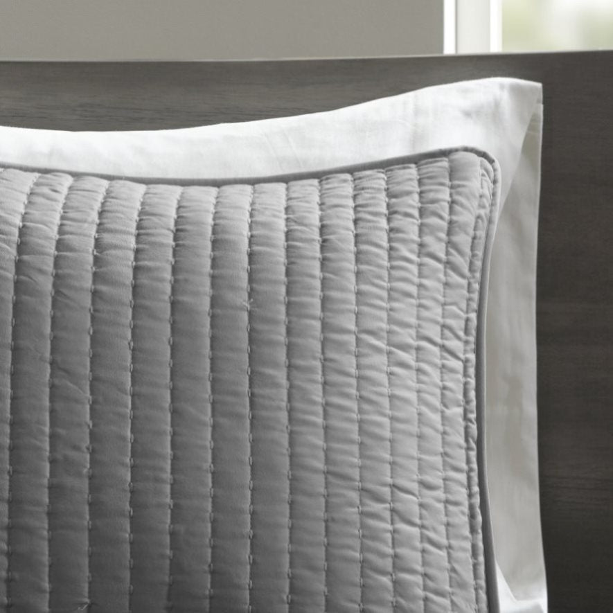 The Madison Park Keaton Reversible Quilt Set provides a simple and casual update to your bed. This solid grey reversible quilt features pick stitch channel quilting to keep the cotton-rich filling secure and create a cozy farmhouse look. Matching shams (1 in Twin/TwinXL) complement the quilt to complete the reversible bedding set. This quilt also has an antimicrobial treatment that provides built-in freshness protection, reducing the growth of odor causing bacteria to keep fabric lasting longer. Made from soft brushed microfiber, this reversible quilt set is perfect for summer or as an extra layer in cold weather.