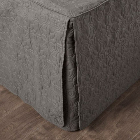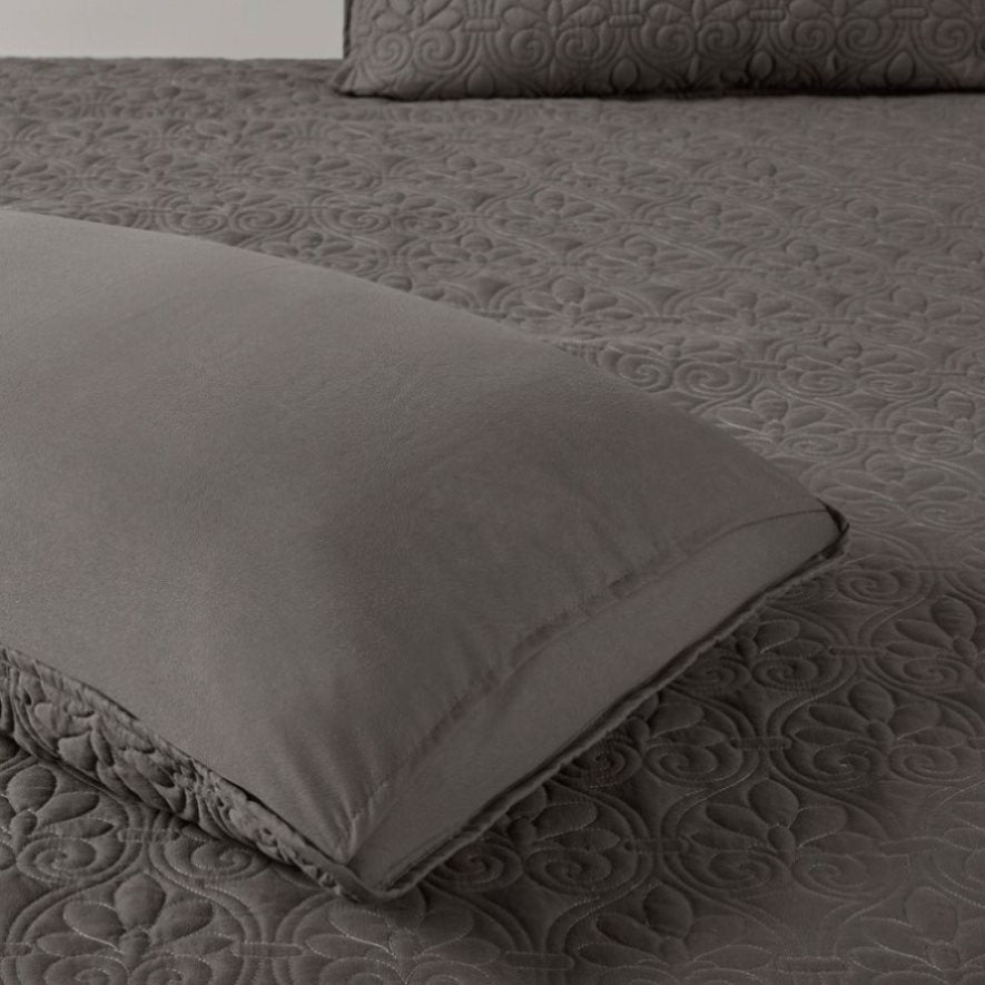 3 Piece Split Corner Pleated Quilted Bedspread Dark Grey Queen B03597559