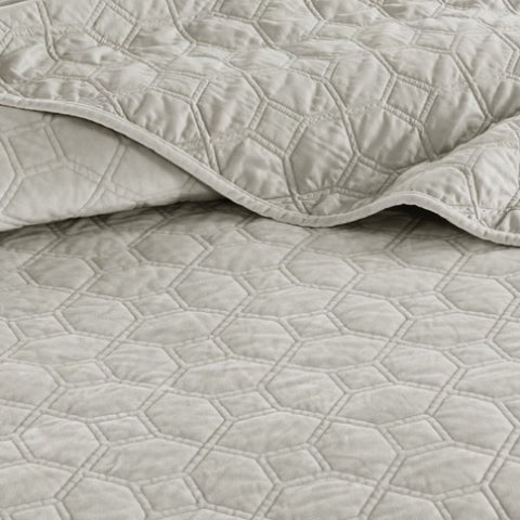 3 Piece Velvet Quilt Set Ivory King/Cal King B03597470