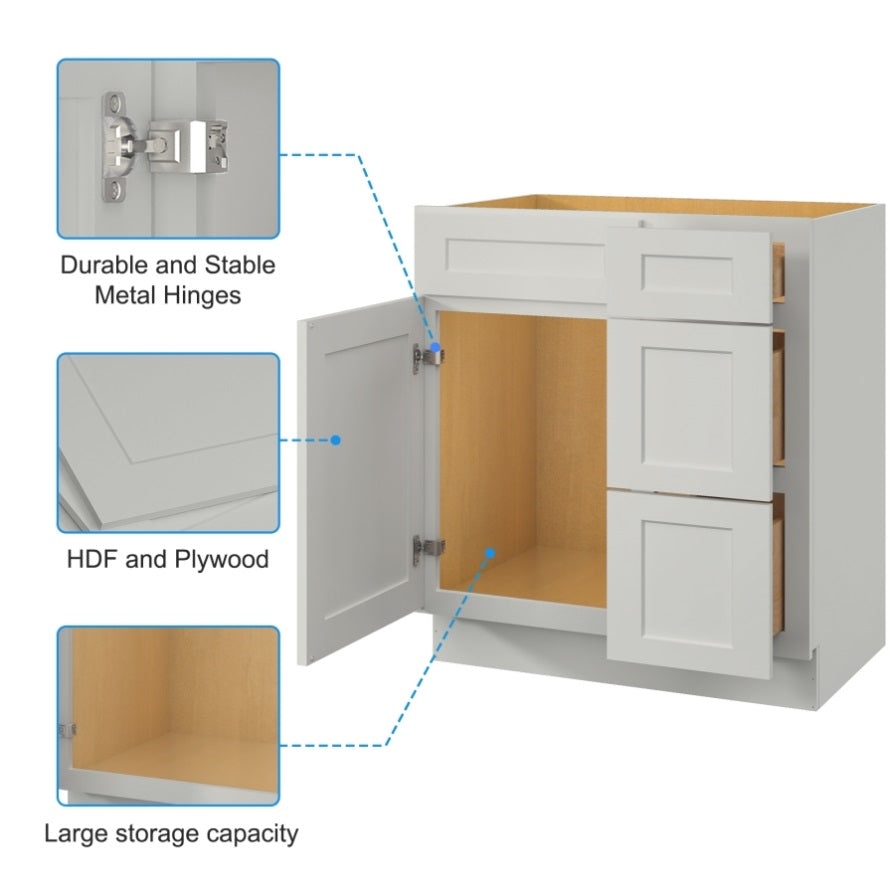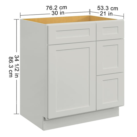 30 in. W x 21 in. D x 34.5 in. H in Shaker Dove Plywood Ready to Assemble Floor Vanity Sink Base T3210P282893
