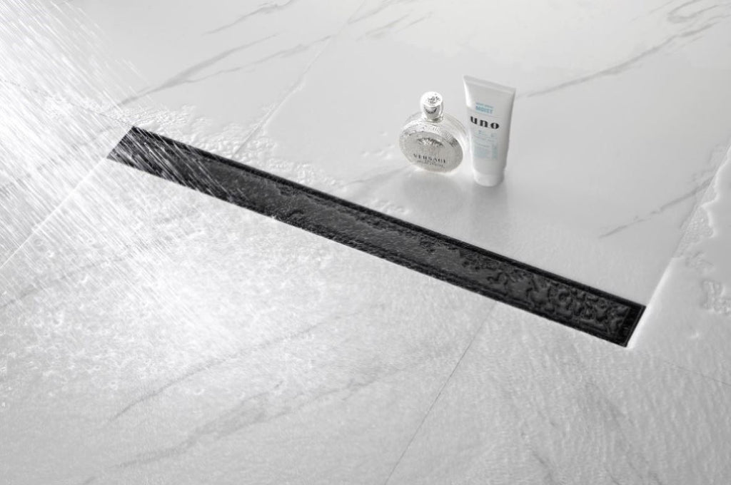 This linear shower drain is designed for easy installation and fits the American drain base system.