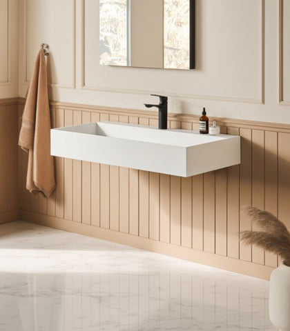 Spacious and Stylish: The 30-inch Wall Mount Sink Stone Resin Matte White Bathroom Sink offers a spacious and stylish solution for your bathroom. Its large size provides ample room for multiple users, making it ideal for shared bathrooms or busy households.