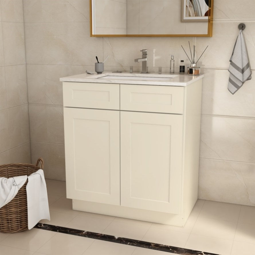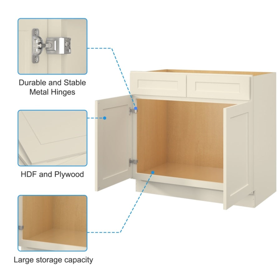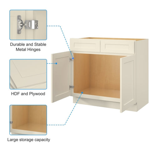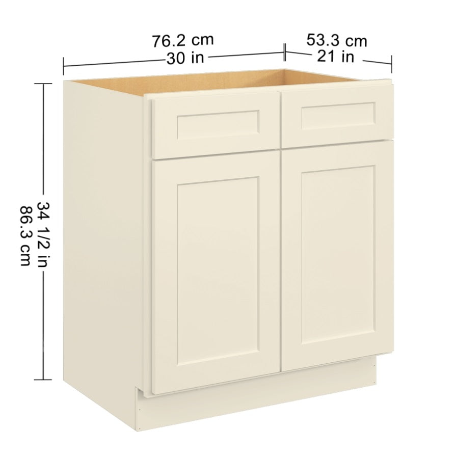 30"in. W x 21"in. D x 34.5"in. H in Antique White Plywood Ready to Assemble Floor Vanity Sink Base T3210P297522