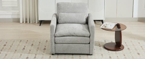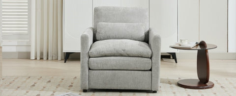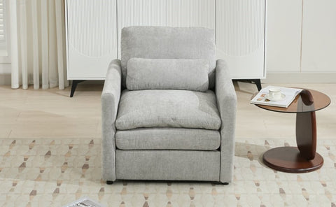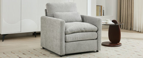 This armchair combines comfort, durability, and style with its premium chenille fabric, double-layered cushion design, and ergonomic curved armrests. Featuring a detachable lumbar pillow for extra support and elegant stitching details, it offers both aesthetic appeal and long-lasting stability. Its neutral color and modern design make it a versatile addition to any living space, ensuring a cozy and sophisticated seating experience.