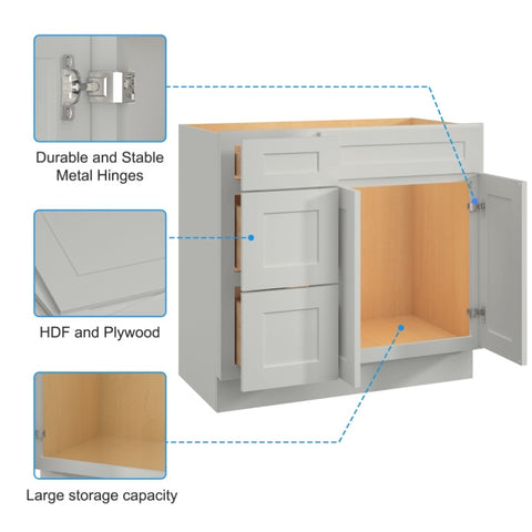 36 in. W x 21 in. D x 34.5 in. H in Shaker Dove Plywood Ready to Assemble Floor Vanity Sink Base T3210P282886