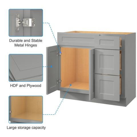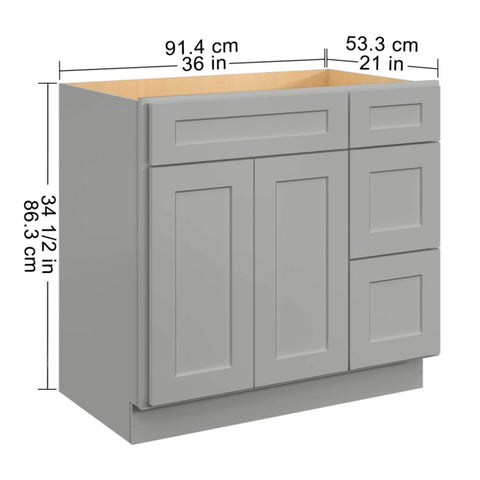 36 in. W x 21 in. D x 34.5 in. H in Shaker Grey Plywood Ready to Assemble Floor Vanity Sink Base T3210P282890