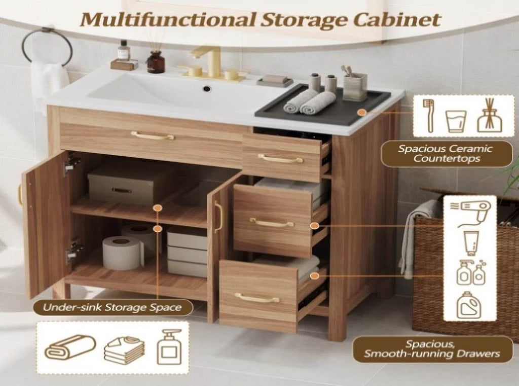 Ample Storage with Adjustable Shelf & Drawers:With three drawers and an adjustable shelf, this vanity provides flexible and spacious storage for all your bathroom essentials.