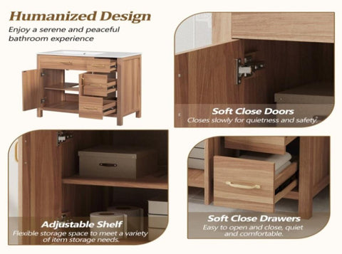 36" Wood Bathroom Vanity Cabinet with Versatile Storage