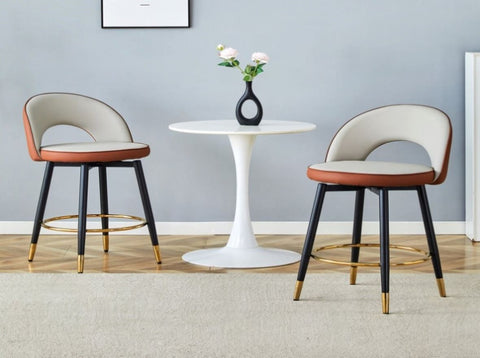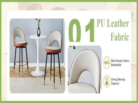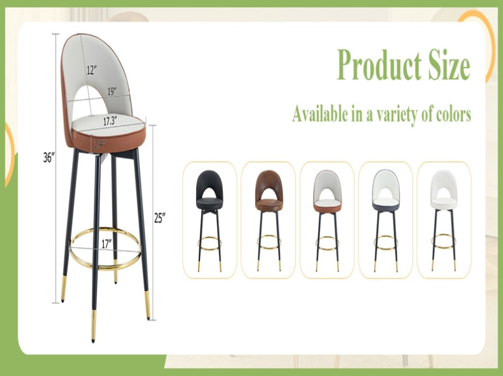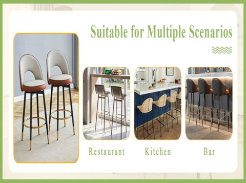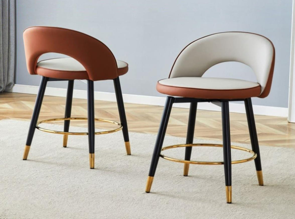 The bar chairs are designed in brown and light gray spliced color, with black metal chair legs,simple yet luxurious.The chairs are filled with sponge for a soft and comfortable sitting experience.The chairs are designed according to ergonomics, providing a more comfortable sitting posture.