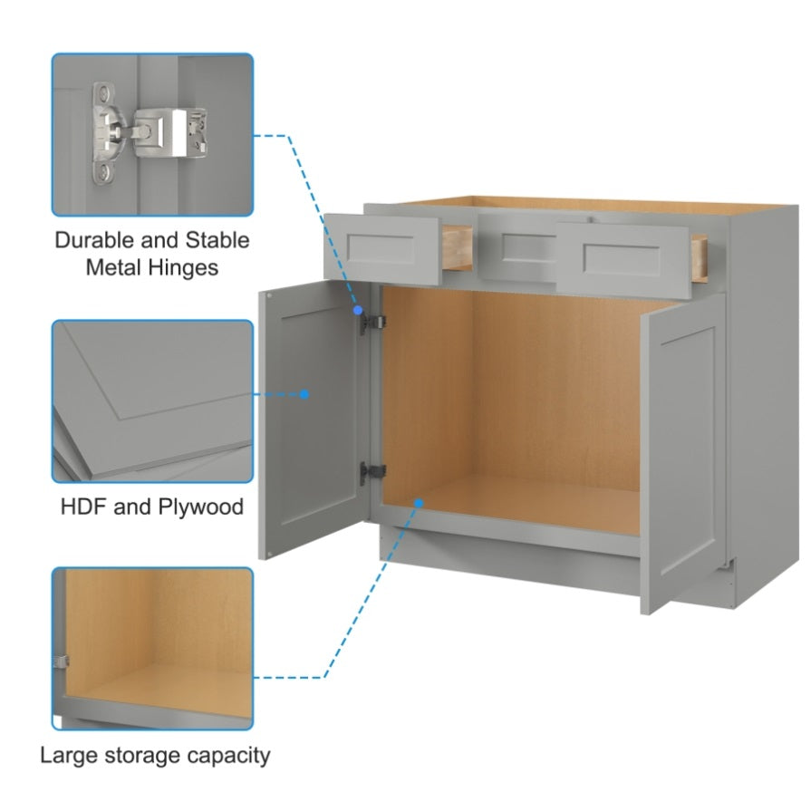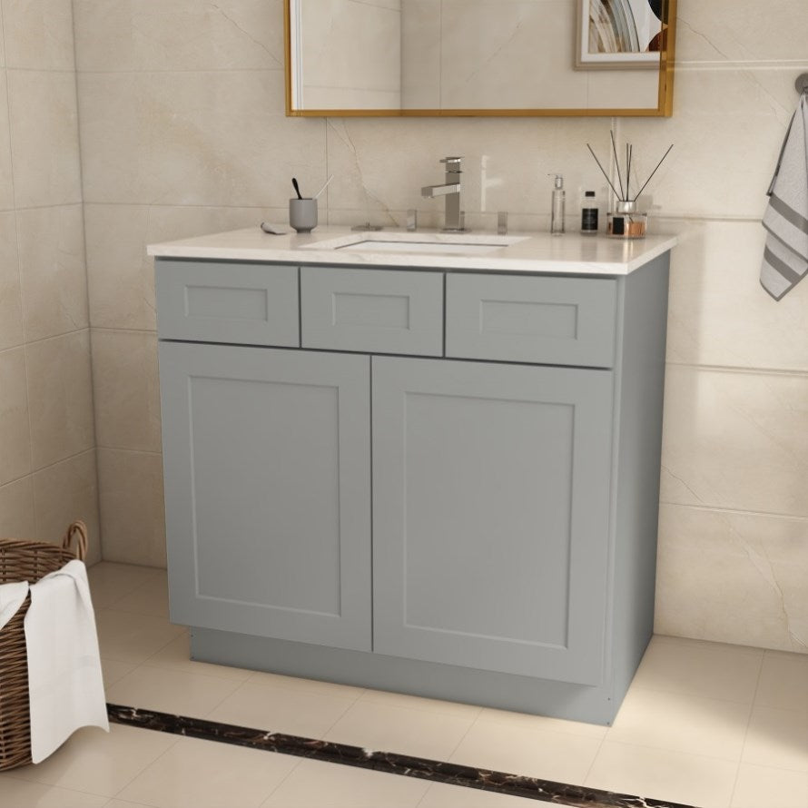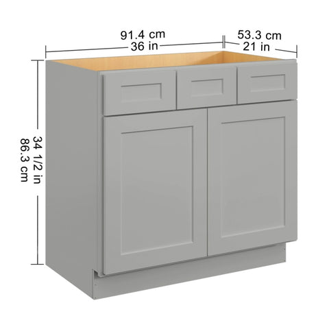 36"in. W x 21"in. D x 34.5"in. H in Shaker Grey Plywood Ready to Assemble Floor Vanity Sink Base T3210P297528