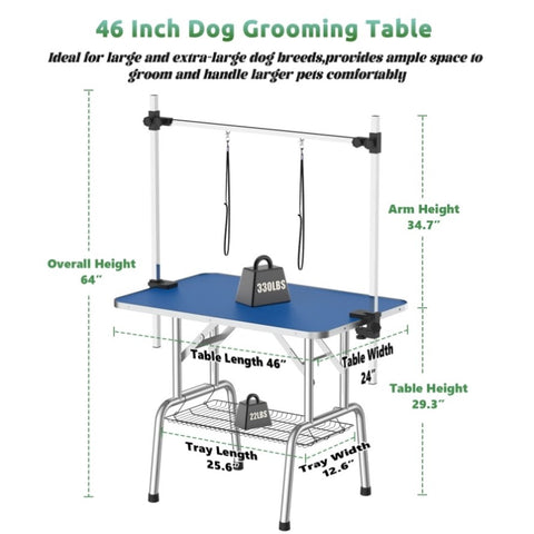 46 Inch Foldable Dog Grooming Table for Home with Adjustable Arm, Noose, Non-Slip Surface, and T3210P293739