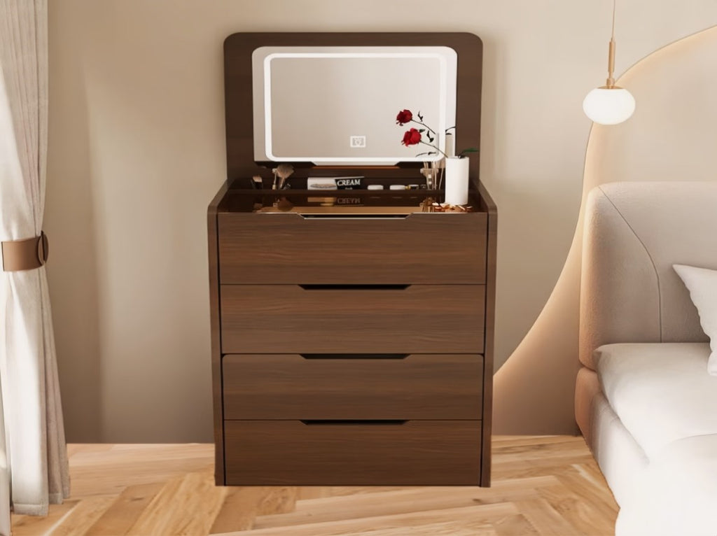 Stylish Design: This Integrated Vanity features a modern and sleek design, with a flip top lighted mirror that adds a touch of elegance to any space. The vanity desk also has an internal storage area, allowing you to keep your makeup essentials organized and within reach.