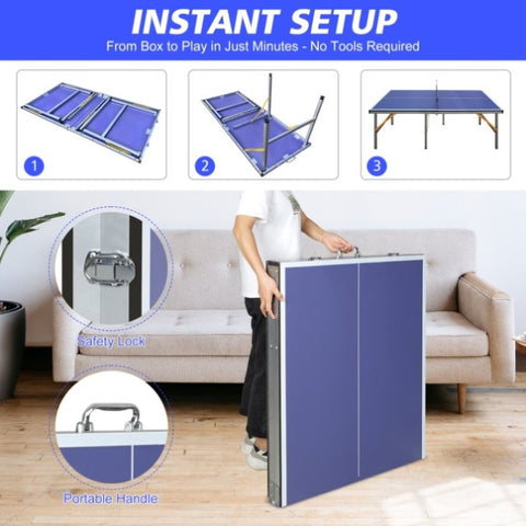 5ft Mid-Size Tennis Foldable & Portable Ping Pong Set for Indoor Games with Net, 2 W1408P272363