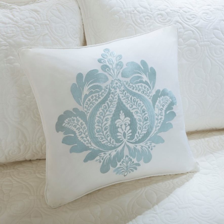 The Madison Park Quebec 6 Piece Reversible Daybed Cover Set offers a charming cottage-inspired update to your guest bedroom. The daybed cover and 3 shams flaunt a classic stitch pattern that creates a rich depth and texture on the face of the bedding set. A square decorative pillow with elegant embroidery and a solid bed skirt add the finishing touches to the daybed set. This reversible daybed cover fits a Twin size mattress and also has an antimicrobial treatment that provides built-in freshness protection, reducing the growth of odor causing bacteria to keep fabric lasting longer.