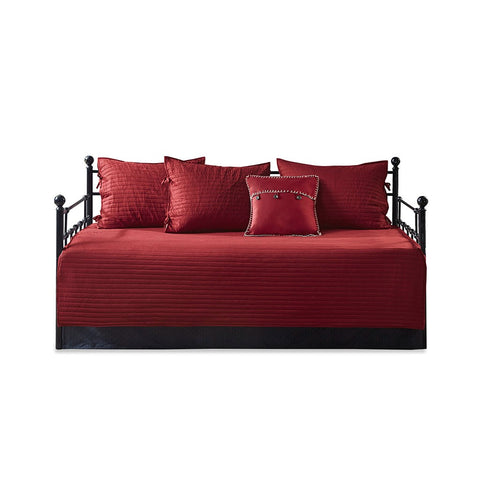Set includes: 1 Daybed Cover (17-inch drop), 1 Bedskirt (15-inch drop), 3 Shams, and 1 Decorative Pillow