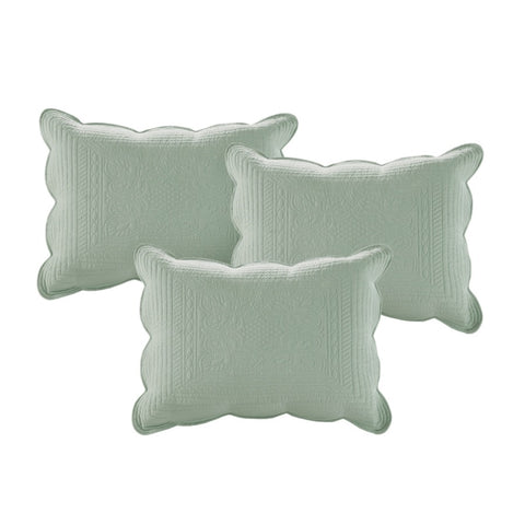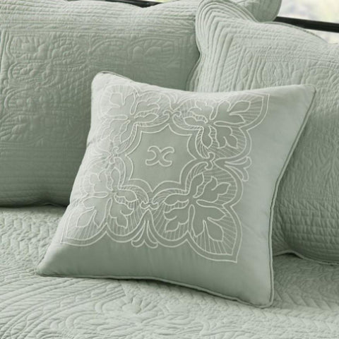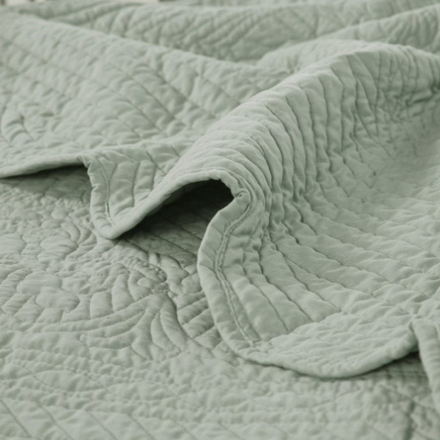 The Madison Park Tuscany 6 Piece Reversible Scalloped Edge Daybed Cover Set offers a charming cottage-inspired update to your guest bedroom. The daybed cover and 3 shams flaunt a classic stitch pattern with scalloped edges that add an elegant touch to your bedroom. A square decorative pillow with elegant embroidery and solid bed skirt add the finishing touches to the daybed set. This country daybed cover also has an antimicrobial treatment that provides built-in freshness protection, reducing the growth of odor causing bacteria to keep fabric lasting longer. The daybed cover easily fits a Twin size mattress. Items in the set may come in a rolled or compressed packaging, which will need to be fluffed up or steam ironed before use to remove wrinkles.