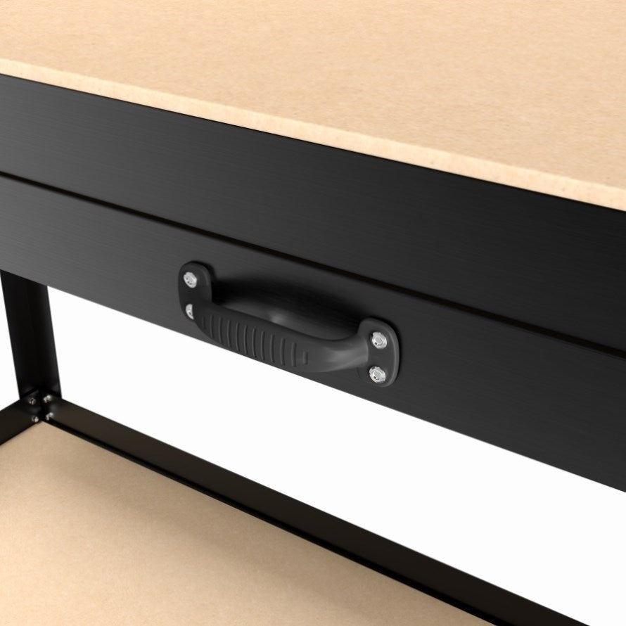 DURABLE & 300LBS CARRYING CAPACITY: Made of solid steel frame and heavy duty MDF panel, high quality craftsmanship and strict quality control are used in the manufacturing process to ensure that each workbench is sturdy and stable enough to hold up to hard use in the workshop. The work surface can handle the heavy load of tool storage, holds up to 300 lbs.