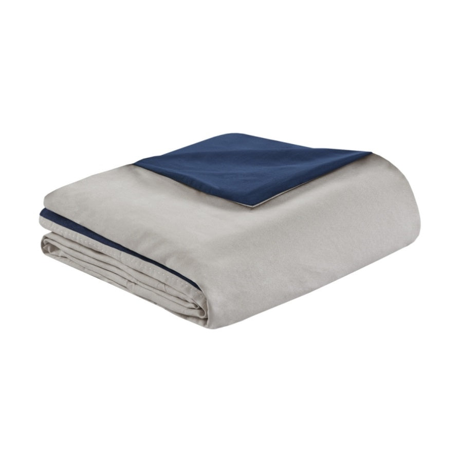 The Madison Park 7 Piece Palisades Comforter Set offers you a casual alternative in fashion bedding. The reverse of the comforter is solid blue. The soft microsuede in heather grey, blue and charcoal grey is pieced together to create this beautiful bed. The decorative pillows are embroidered and pieced to add a decorative element to this simple, yet beautiful bedding collection. With hypoallergenic filling in the comforter and pillows, this stylish comforter set easily refreshes your bedroom décor and is machine washable for easy care. Items in the set may come in a rolled or compressed packaging, which will need to be fluffed up or steam ironed before use to remove wrinkles.