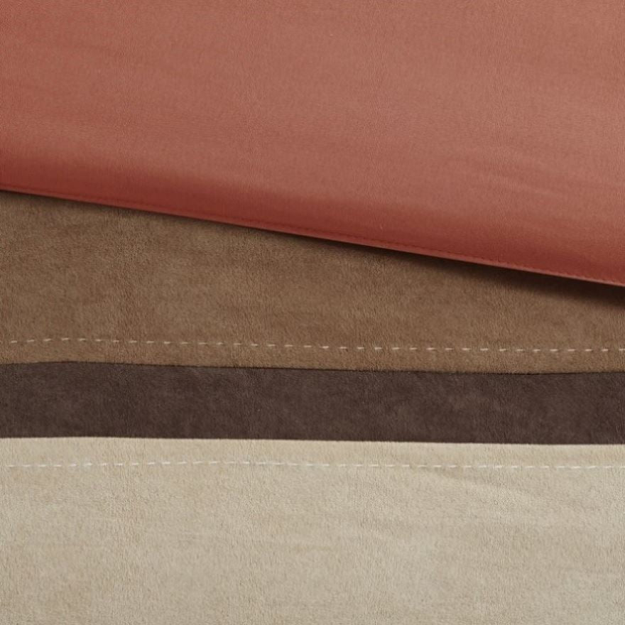 The Madison Park 7 Piece Palisades Comforter Set offers you a casual alternative in fashion bedding. The reverse of the comforter is solid coral. The soft microsuede in ivory, coral and brown is pieced together to create this beautiful bed. The decorative pillows are embroidered and pieced to add a decorative element to this simple, yet beautiful bedding collection. With hypoallergenic filling in the comforter and pillows, this stylish comforter set easily refreshes your bedroom décor and is machine washable for easy care. Items in the set may come in a rolled or compressed packaging, which will need to be fluffed up or steam ironed before use to remove wrinkles.