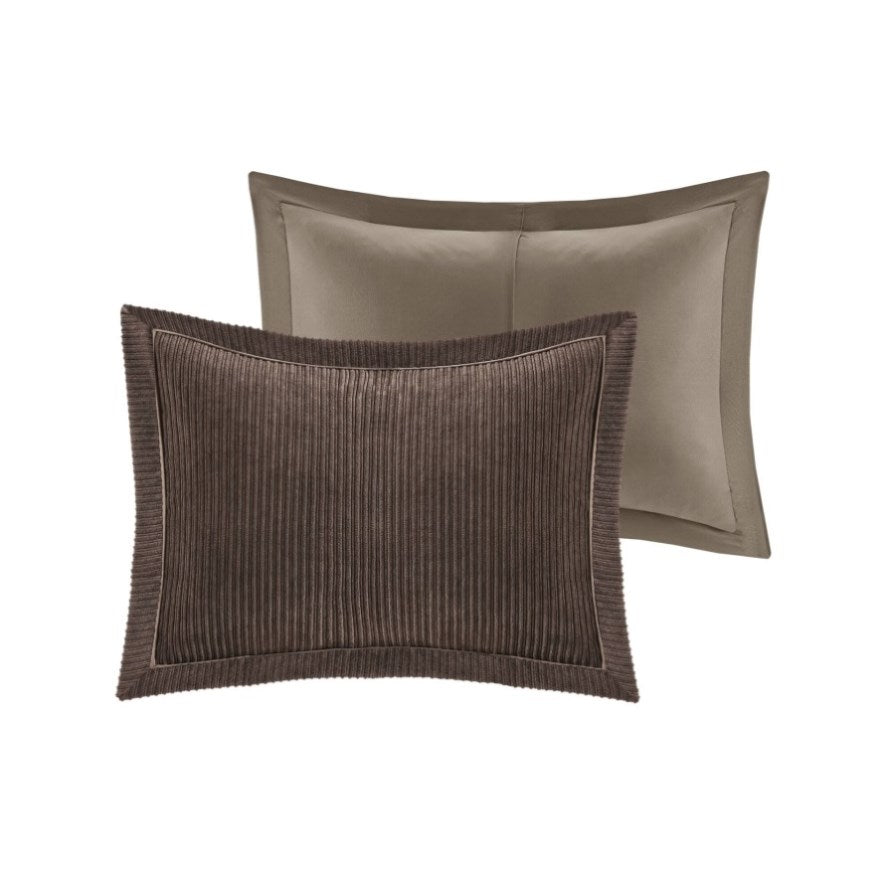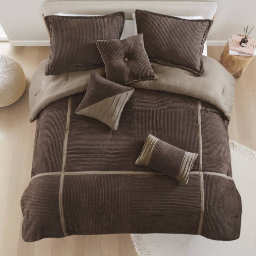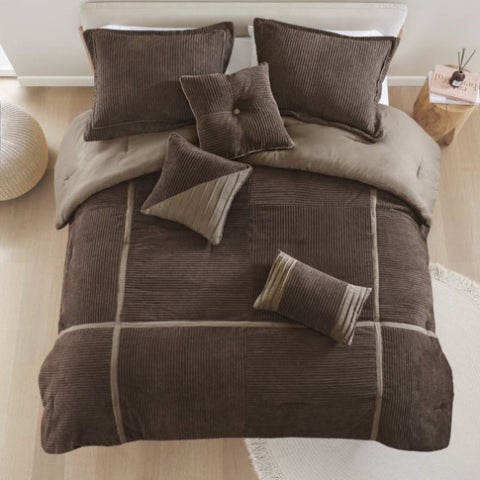 7 Piece Micro Corduroy Comforter Set Brown Queen B035P266664
