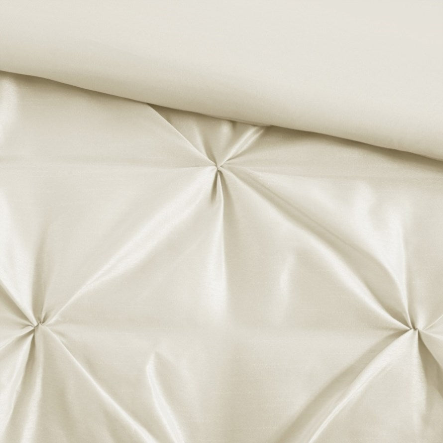 This beautifully tufted bed is from the Laurel bedding collection. Its ivory coloring makes this set easy to accessorize in your bedroom. The collection is made from 100% polyester polyoni and has pieced fabric sewn together to give this set added dimension. It is finished with a smooth edge of fabric that creates a beautiful border around this comforter. Items in the set may come in a rolled or compressed packaging, which will need to be fluffed up or steam ironed before use to remove wrinkles.