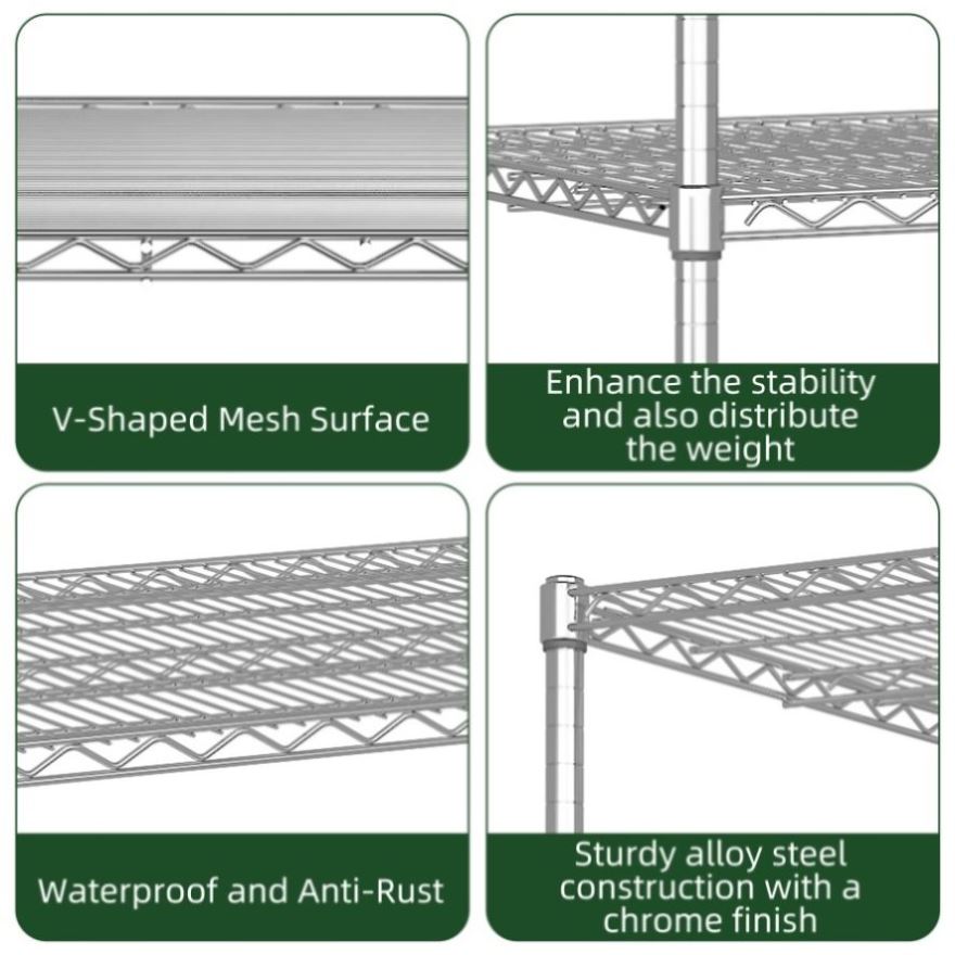 Rust and Wear ResistanceChrome-plated shelves provide excellent rust and oxidation resistance, ensuring your storage stays in top condition.
