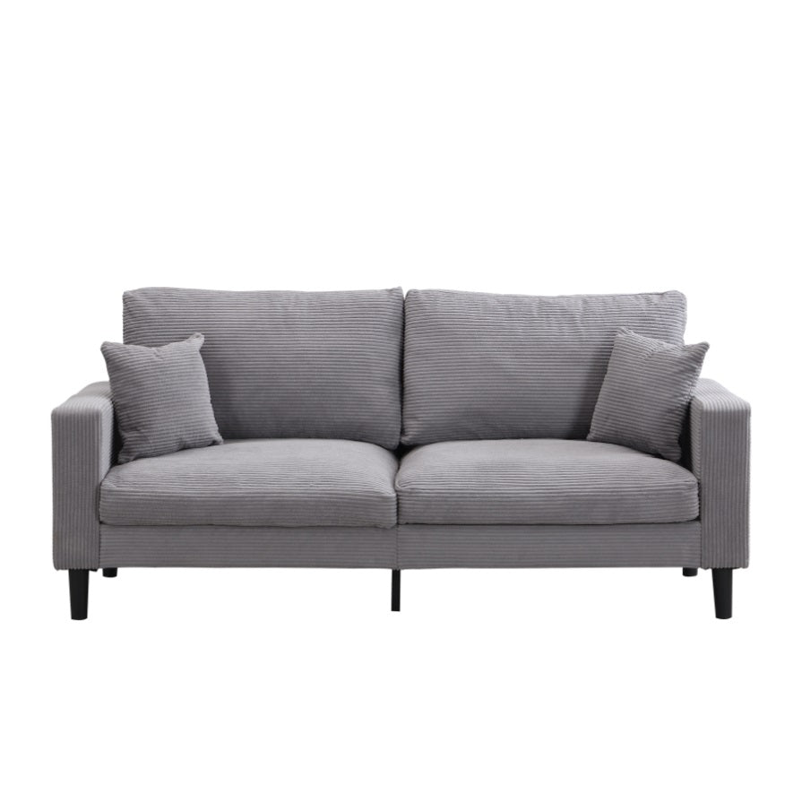 Comfortable This small couch with upholstered sponge,human design, 2 pillows, offer you comfy touch. Also the high-density sponge cushion is soft and comfortable, providing ultimate seating comfort and cushion durability to last.