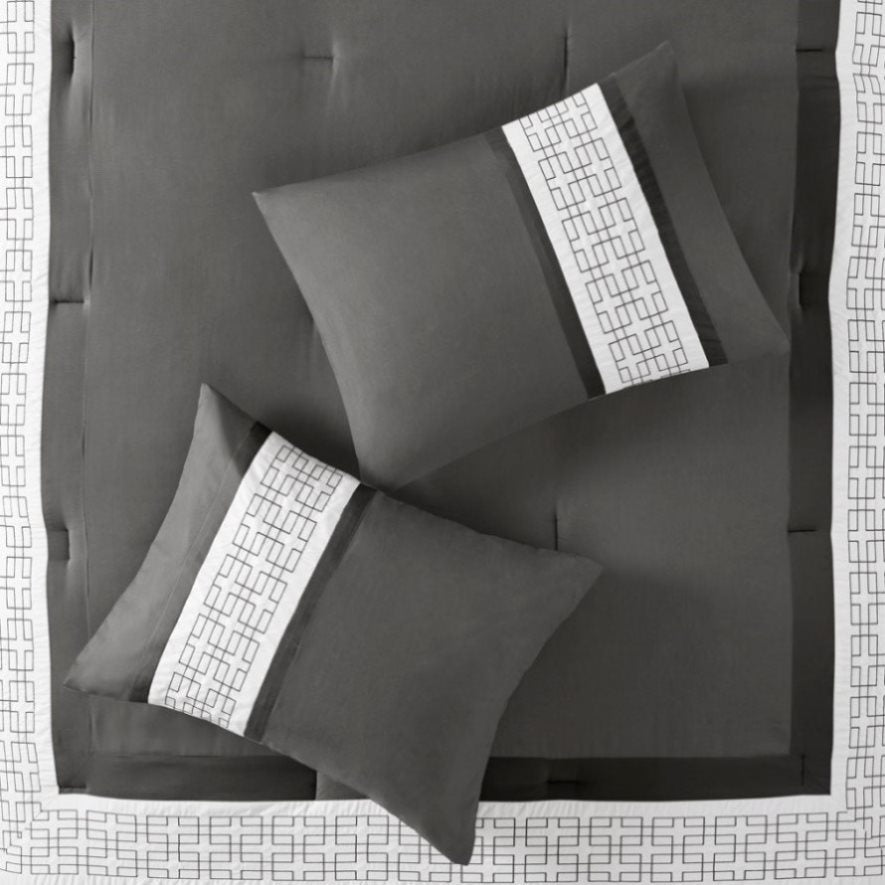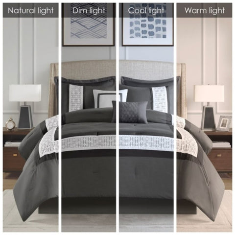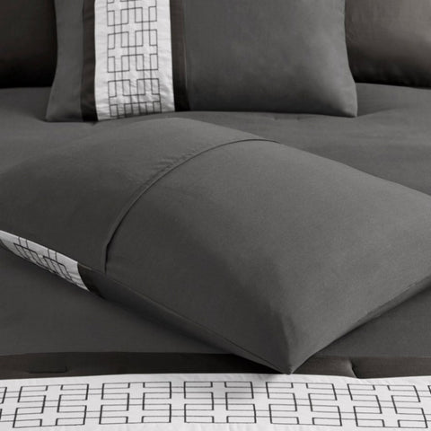 8 Piece Embroidered Comforter Set Dark Grey Cal King B035P266660