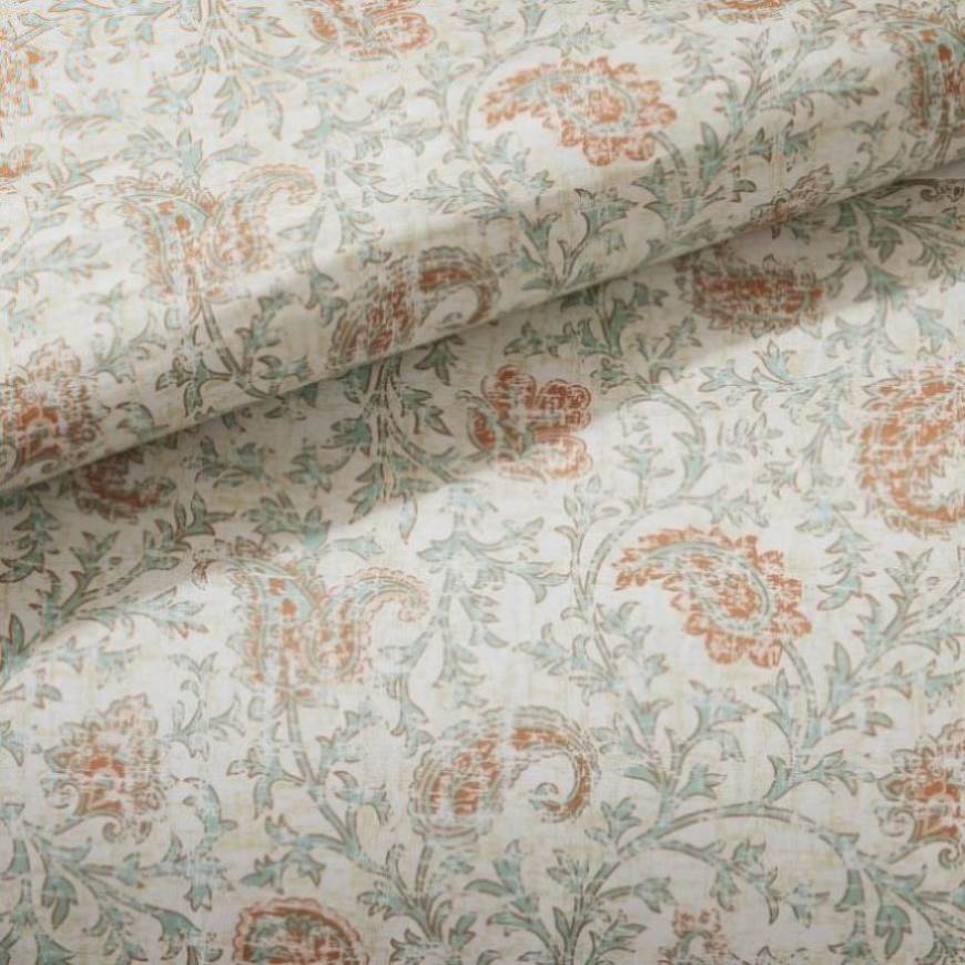 The Madison Park Dawn 9 Piece Cotton Percale Comforter Set offers a shabby chic update to your bedroom decor. A paisley print is featured on the cotton comforter with pintucked fabric separated by lace taping embellishments. Around the edge, a ruched flange adds a graceful touch, for a charming cottage look. Matching shams mirror the design of the comforter, while two solid Euro shams complement the top of the bed. Three decorative pillows and a solid bedskirt complete this farmhouse comforter set. This bedding set is also OEKO-TEX certified, meaning it does not contain any harmful substances or chemicals to ensure quality comfort and wellness. A coordinating shower curtain is available and sold separately. Items in the set may come in a rolled or compressed packaging, which will need to be fluffed up or steam ironed before use to remove wrinkles.