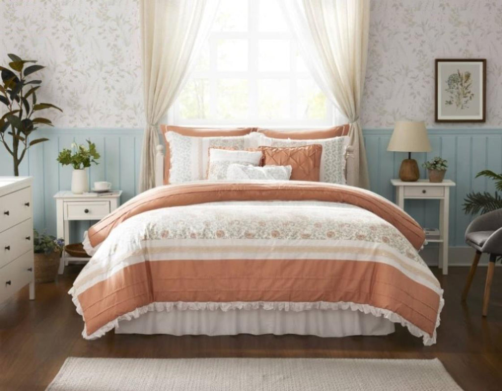 Cottage and shabby chic 9 piece comforter set in cotton fabrication
