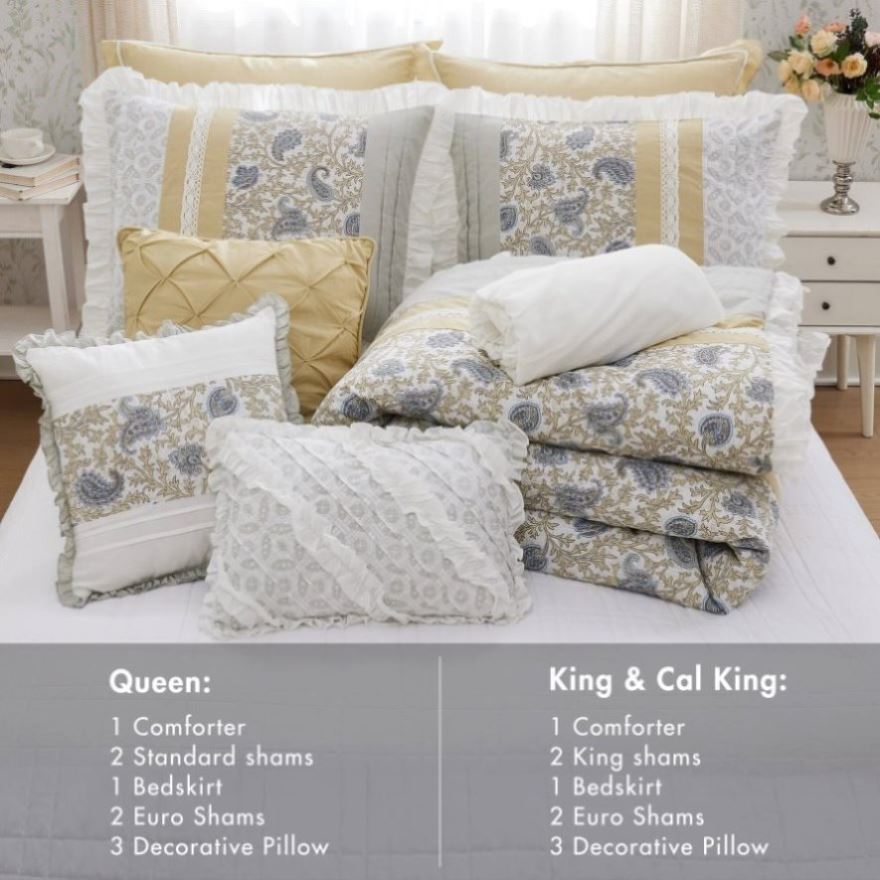 Cottage and shabby chic 9 piece comforter set in cotton fabrication