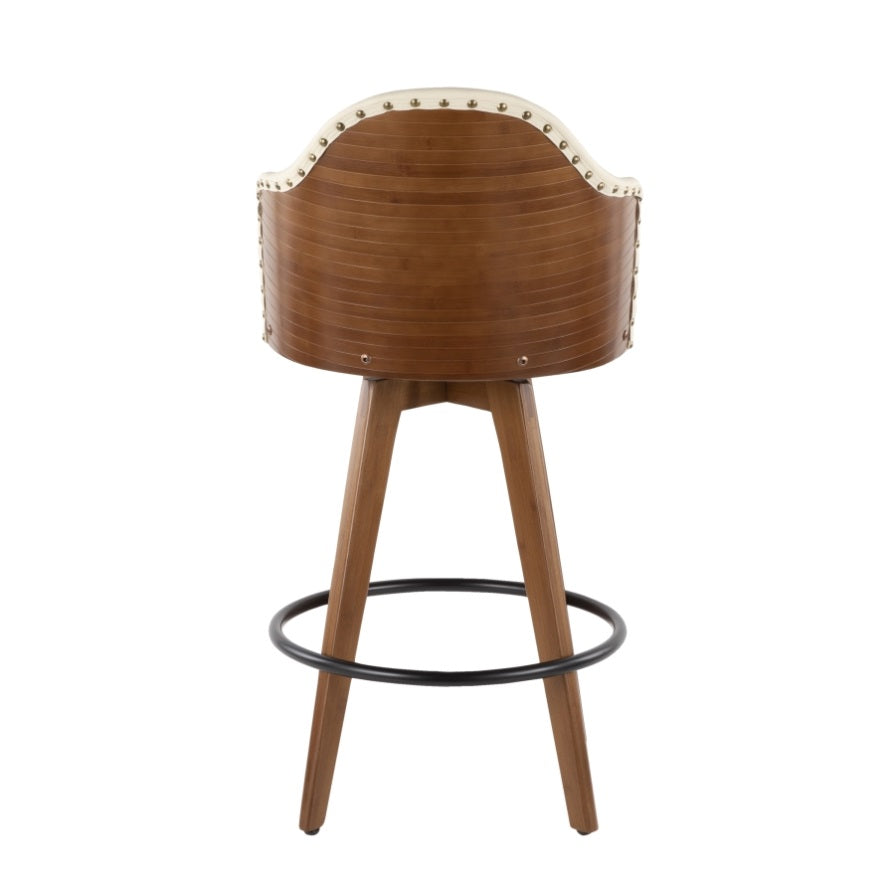 Ahoy Mid-Century Counter Stool in Walnut and Cream Faux Leather by LumiSource B202P222358