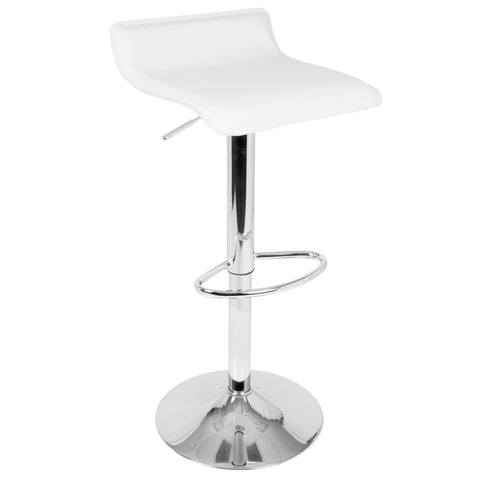 Ale Contemporary Adjustable Barstool in White PU Leather by LumiSource - Set of 2 B202P222268