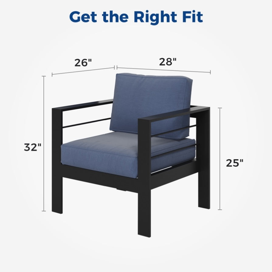 Durable Aluminum Frame: Crafted from 100% aluminum with a thick powder coating, this modern patio single chair guarantees lasting durability. Resistant to water, rust, and fading, it maintains its quality in outdoor settings.