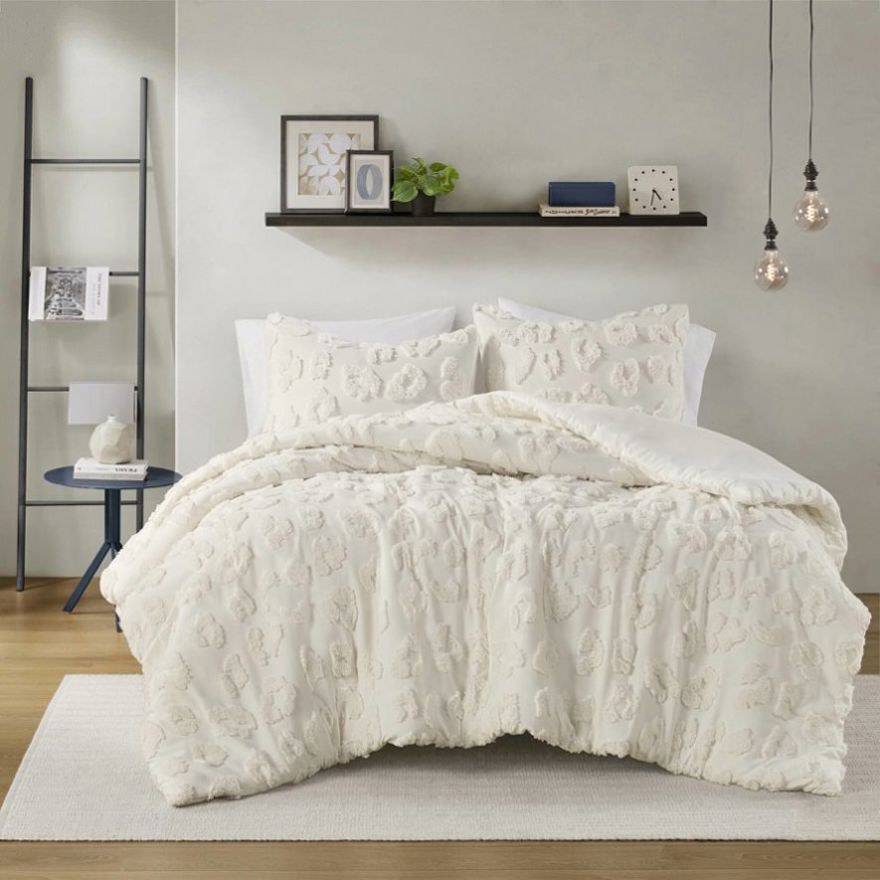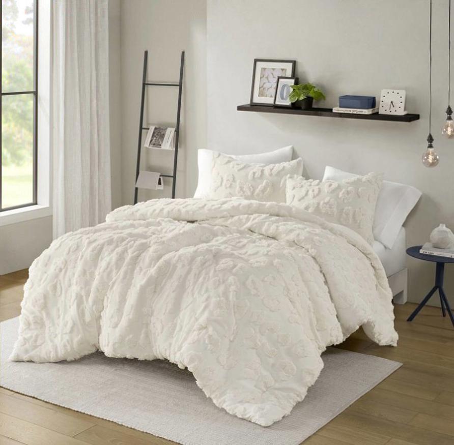Poly clipped chenille comforter set with a microfiber reverse and polyester filling