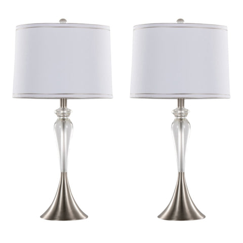 This sleek set of Ashland Table Lamps from Grandview Gallery by LumiSource cuts an eye-catching figure. With their elegant hourglass bases made with clear crystal, these lamps add sensuous class to any room. Whether adorning your living space, bedroom, or office, these lamps effortlessly elevate your ambiance with their timeless appeal.