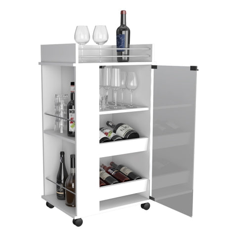 Baltimore Bar Cart with Casters, Glass Door and 2-Side Shelf B070P188861