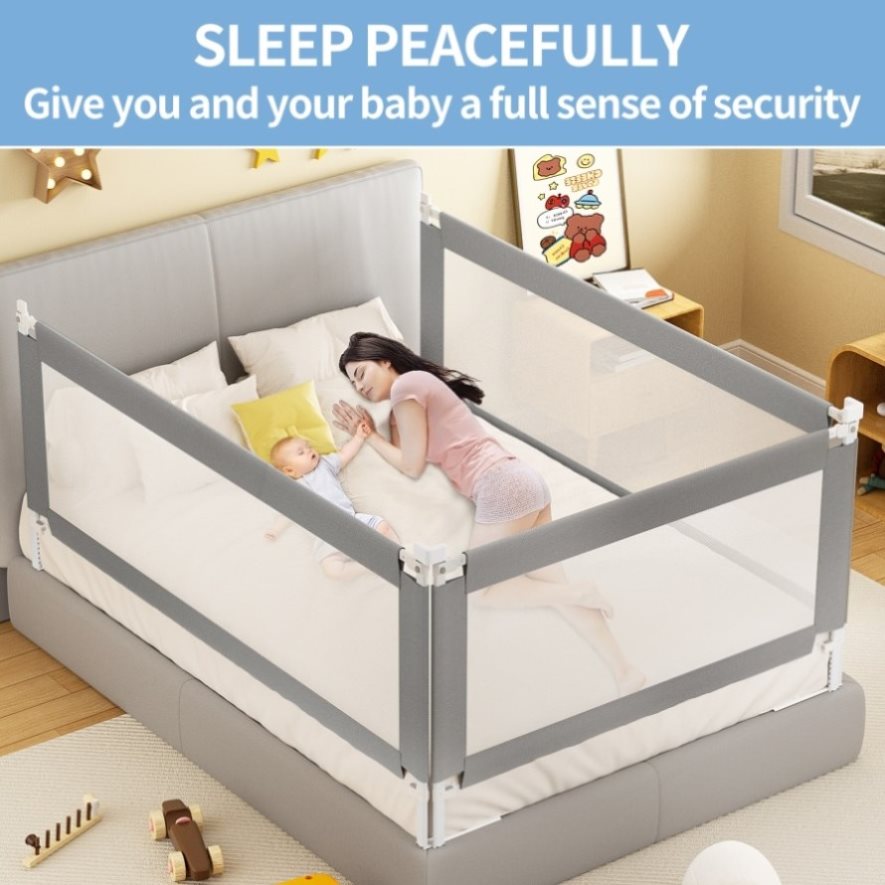 HIGH-QUALITY GUARDRAIL - The metal rods and mesh fabric of the bed guardrail are made of non-toxic materials. Our upper guardrail rods are wrapped, and the high-quality linen and breathable mesh padding are wear-resistant and not easy to tear, giving the baby a reassuring environment