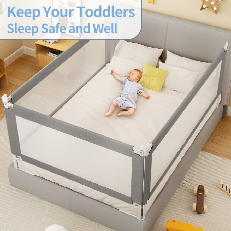 DETACHABLE GUARDRAIL - Our toddler bed rails are designed for easy entry, equipped with a simple single-side or double-side lifting mechanism, and the upper guardrail can also be separated and flipped, allowing you to easily get in and out of bed. Before purchasing our bed rail guardrail, please measure the dimensions of your bed and mattress to ensure you choose the correct size