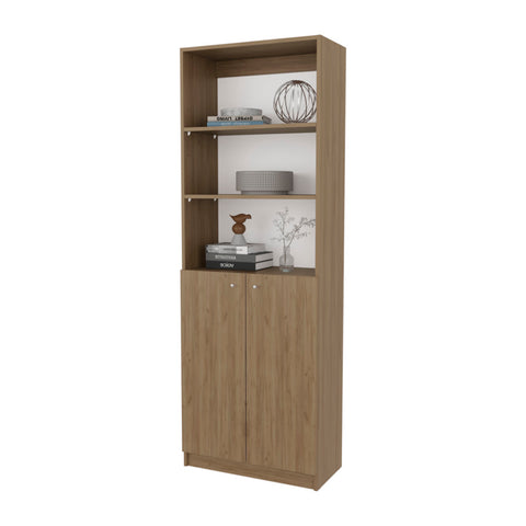 Beyerville Bookcase with Open Storage and 2 Doors, Natural Oak and White B128P314795