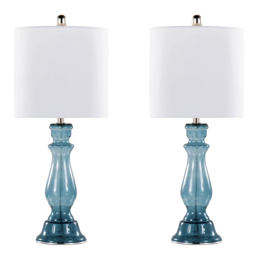 Add an updated touch to your space with the Bishop Table Lamp from Grandview Gallery by LumiSource. The traditional balustrade shape of these table lamps is complimented by a minimalistic linen drum shade that accentuate the beauty of the lamp's glass construction. Whether resting on your nightstands, set on side tables in the den or tucked into your favorite reading nook, this set of lamps is an appealing choice.