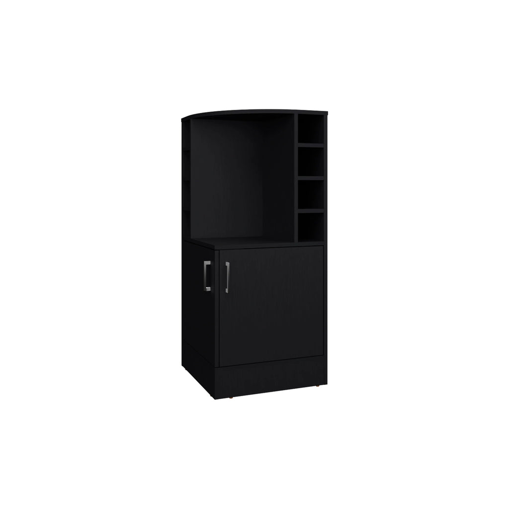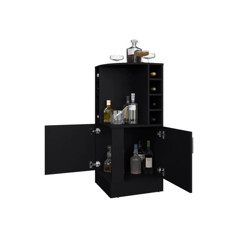 Black Corner Bar Cabinet with Bottle Rack and Open Shelf B062P290257