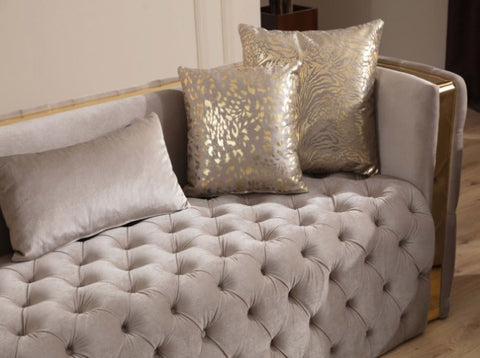 Button Tufted Loveseat with Velvet Fabric and Gold Accent in Taupe B00961116