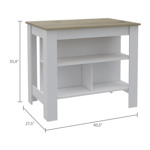 Cala Kitchen Island Antibacterial, Three Shelves, Four Legs -Light Oak / White B20092014