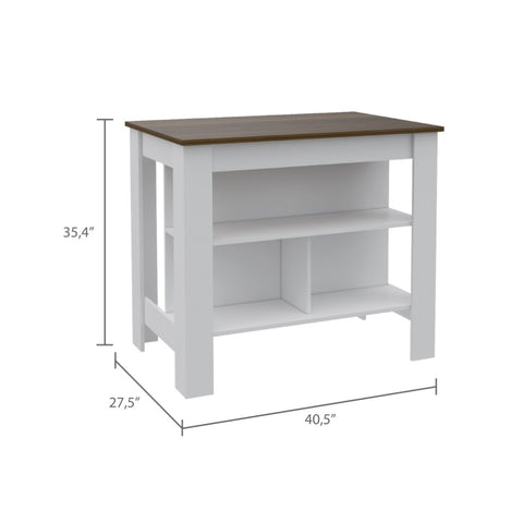Cala Kitchen Island, Four Legs, Three Shelves -White / Walnut B07092012