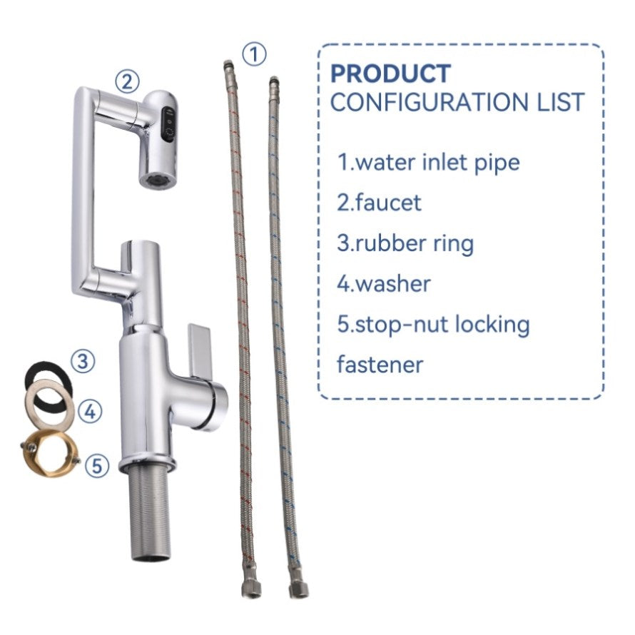 360° RotationThe bathroom faucet with 360° Rotation has a three-section rotation design, including horizon , vertical and spout height direction, and can be easily bent or folded, supply full range of washing for your sink.